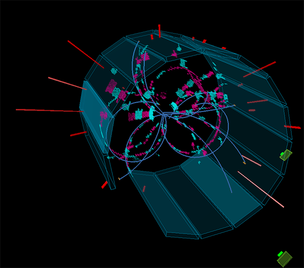 (Одно из первых событий в детекторе Belle-II)